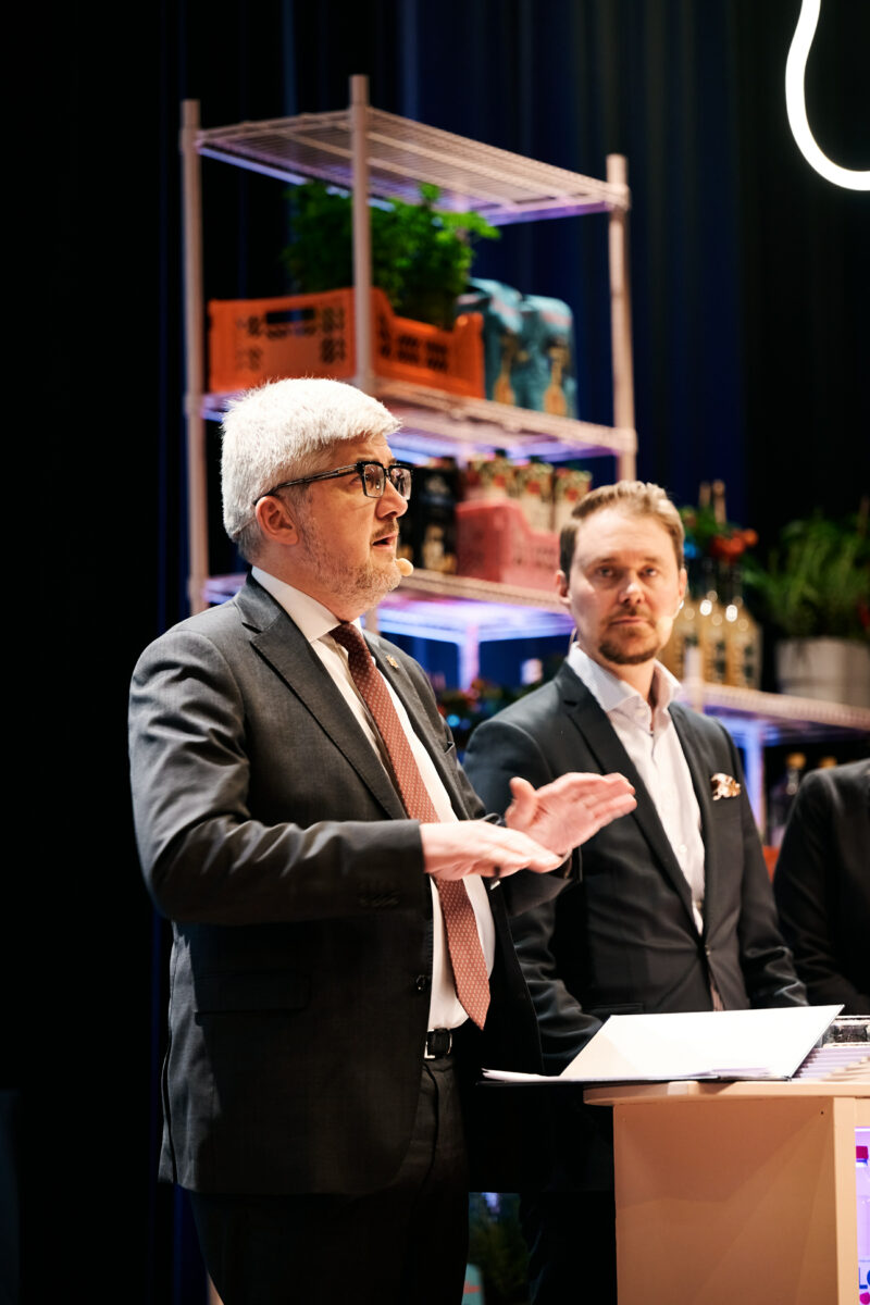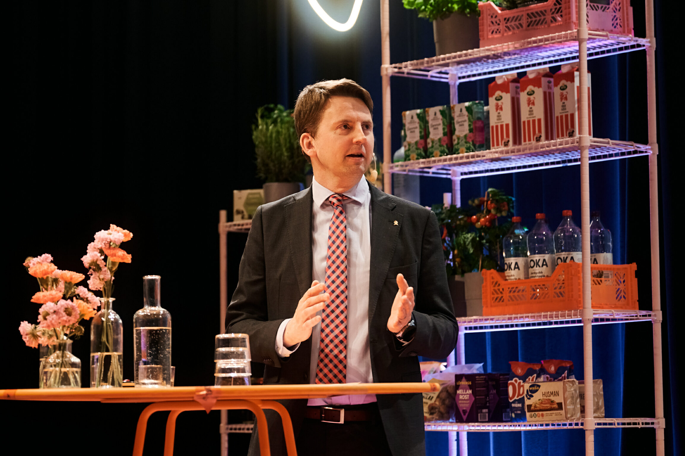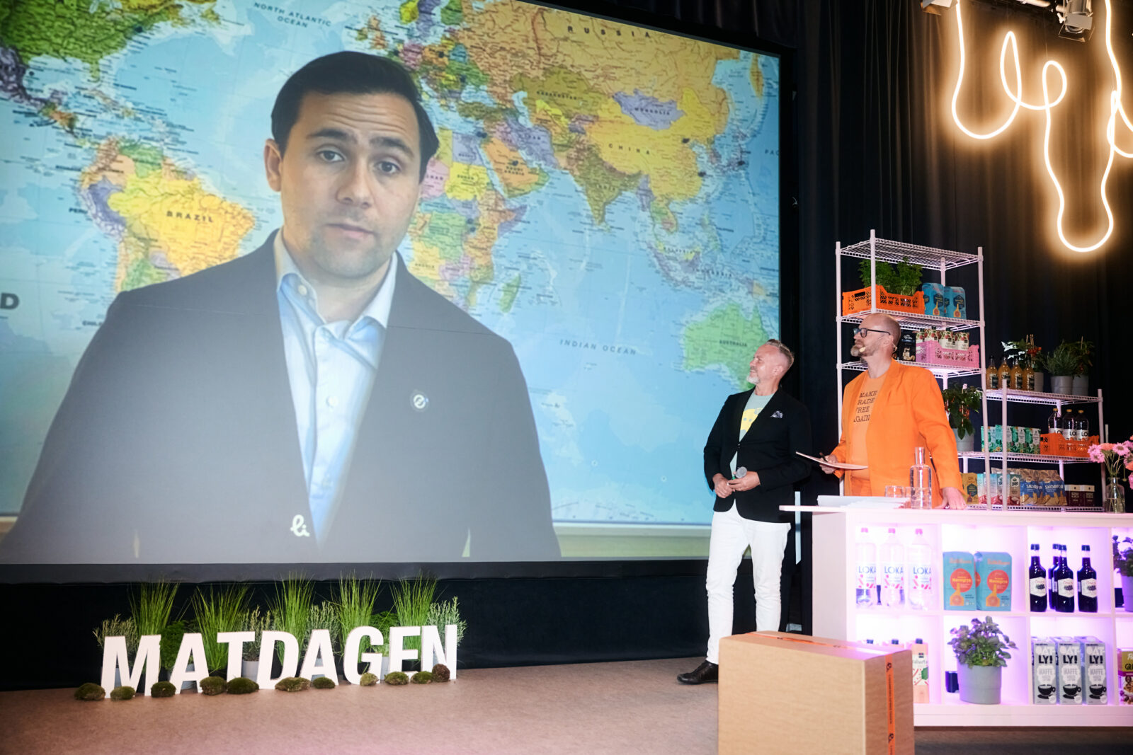 Sofie Eliasson Morsink, Livsmedelsföretagens ordförande, hälsade välkommen.Dagens moderator Daniel Emilson, presschef på Livsmedelsföretagen, hade klätt upp sig dagen till ära. Daniel Liljeberg, statssekreterare hos landsbygdsminister Peter Kullgren, presenterade den uppdaterade livsmedelsstrategin och frågades ut av moderator Daniel Emilson.