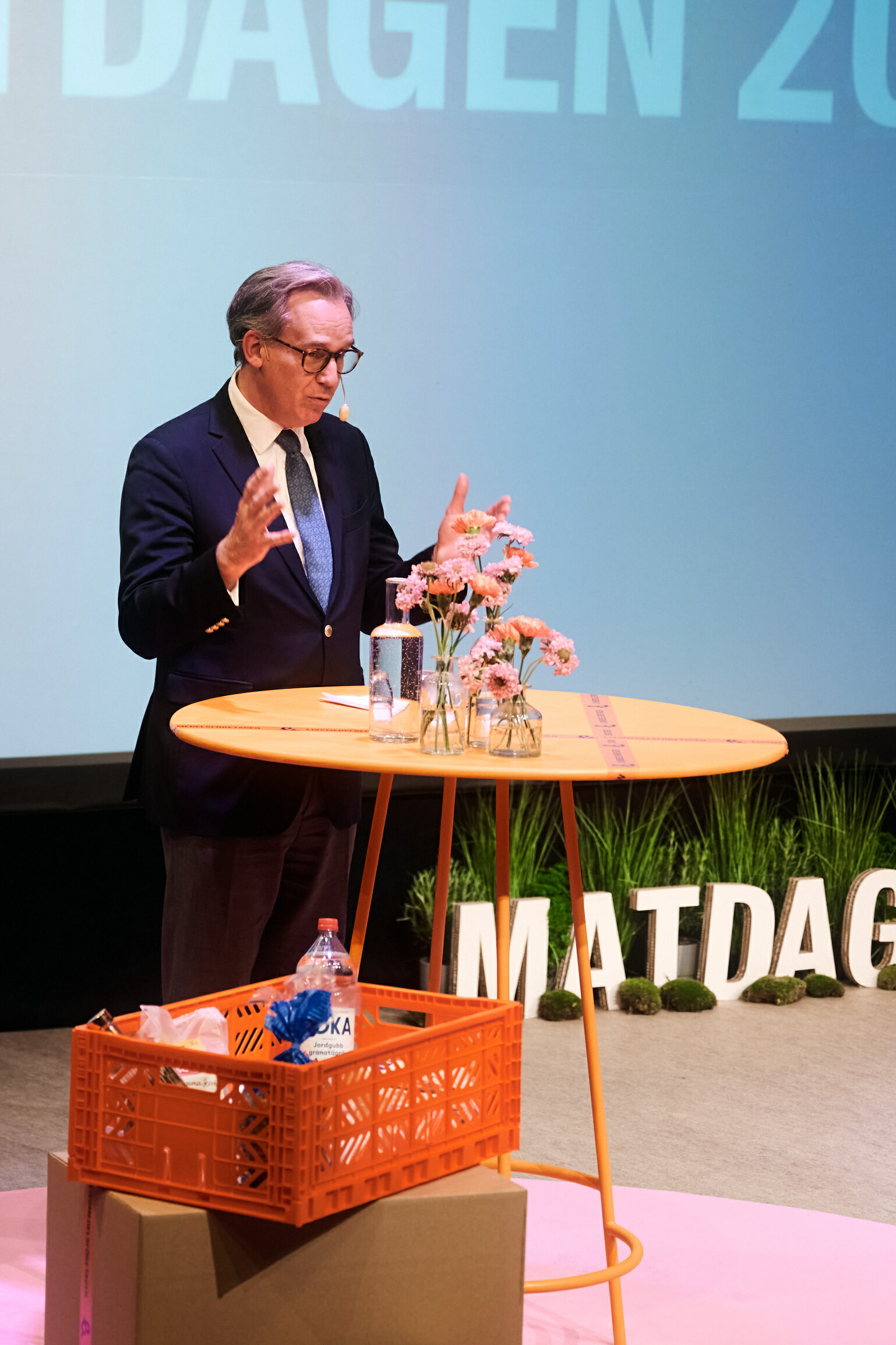 Björn Hellmans presentation följdes av ett panelsamtal om livsmedelsberedskap och försörjningsförmåga med Ukrainas ambassadör Andrij Plachotnjuk, Eero Alaluusua, beredskapschef vid Finlands livsmedelsindustri, Camilla Eriksson, forskare vid FOI och ansvarig för Food Defence Research Centre, och Per Arfvidsson, vice vd Lantmännen.Camilla Eriksson, forskare vid FOI, berättade om den viktiga forskningen som bedrivs på nybildade Food Defence Research Centre. Per Arfvidsson, vice vd på Lantmännen, berättade bland annat om Lantmännens verksamhet i Ukraina och vad Lantmännen gör för att öka sin beredskap.Ukrainas ambassadör Andrij Plachotnjuk berättade om vikten av Sveriges och EU:s stöd till Ukraina. Eero Alaluusua, beredskapschef vid Finlands livsmedelsindustri, välkomnade Sveriges ökade intresse för beredskaps- och försvarsfrågor. Johan Berggren, statssekreterare hos ministern för civilt försvar Carl-Oskar Bohlin, berättade om regeringens satsningar på krisberedskap och civilförsvar. Som sitt bidrag till DiploMATlådan valde Johan Berggren svenska köttbullar från Scan. Bagarlandslaget, inspirerade av Paul Svenssons bok Frukt & Bär A-Ö, bjöd på en fantastisk fika och en välbehövlig paus för åhörarna.Efter pausen fanns det knappt en smula kvar av Bagarlandslagets fika.Den oefterhärmlige gastronomilegenden Carl Jan Granquist pratade om gastronomins betydelse för svensk livsmedelsproduktion och varför det är viktigt att gastronomi är ett av tre fokusområden i den uppdaterade strategin.Ett av Carl Jans bidrag till DiploMATlådan var en flaska av den svenska premiumvodkan Elyx. Elin Ingves Pyk, ordförande i Cajsa Warg-prisets finaljury och Johanna Westman, mat- och TV-profil tillika ny jurymedlem, berättade om juryns arbete och presenterade en spännande nyhet: en åttonde plats i finaljuryn öppnas nu upp för allmänheten. Alla får söka!
