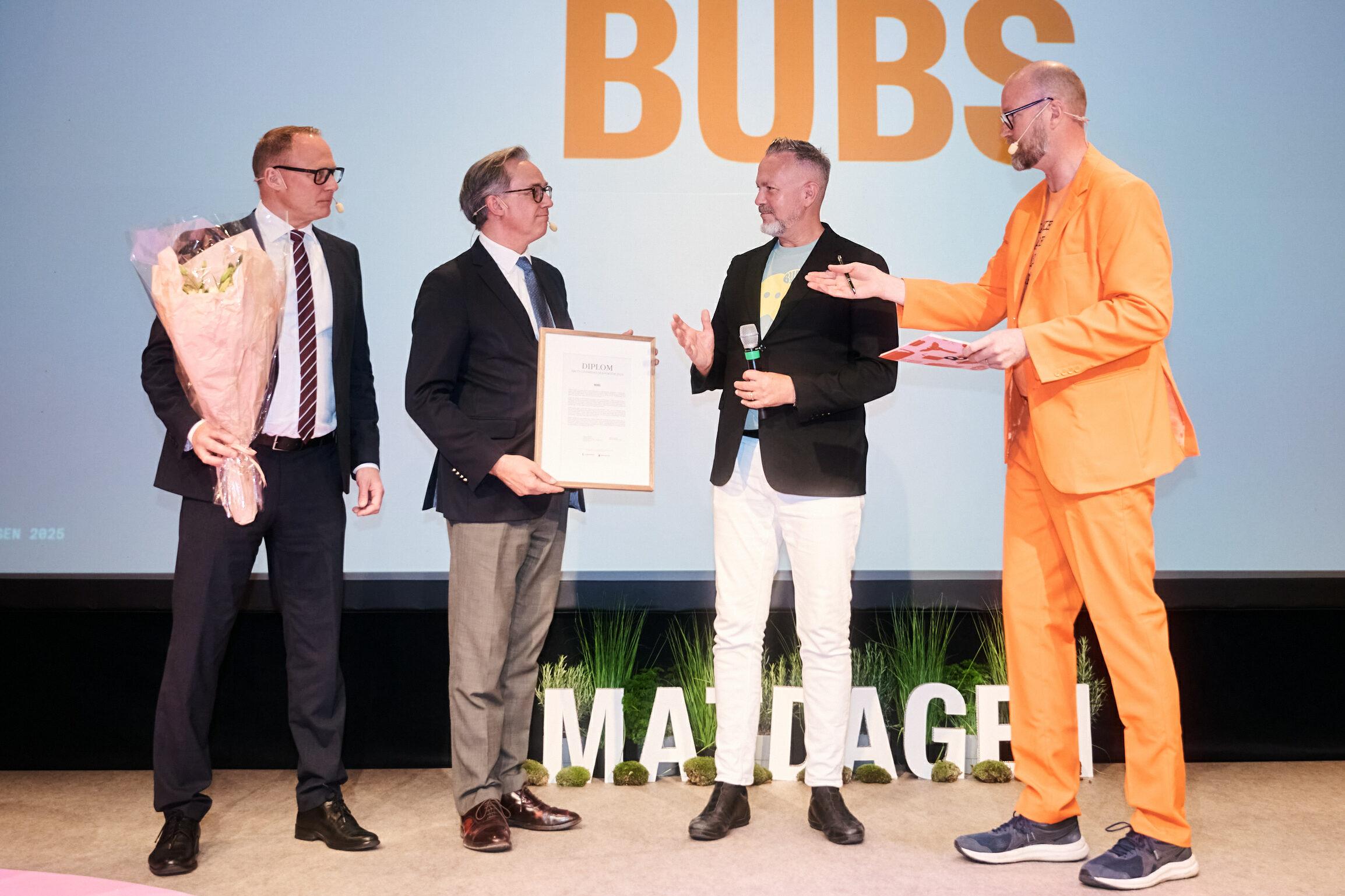 Håkan Jevrell, statssekreterare hos bistånds- och utrikeshandelsminister Benjamin Dousa, berättade om den nya svenska (mat)exportstrategin.Inför samtalet om vikten av handel och export med Håkan Jevrell passade moderatorn på och bytte om.Håkan Jevrells bidrag till DiploMATlådan var ett paket mellanrost.BUBS blev Årets Livsmedelsexportör 2025. Patrick Axzell, vd för Orkla Snacks Sverige som köpte BUBS 2023, tog emot priset inklusive ett fint diplom.