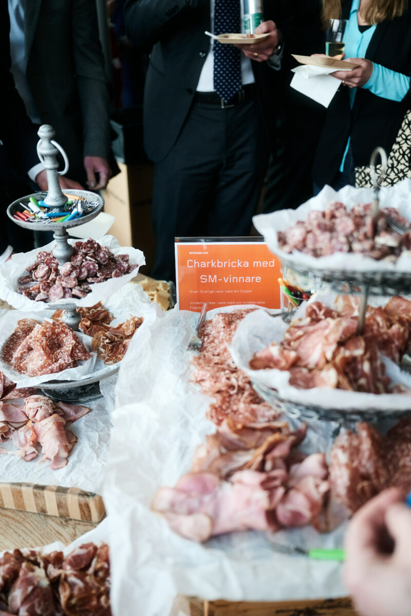 BUBS och Patrick Axzell fick även ta emot en videohyllning från utrikeshandelsminister Benjamin Dousa.Malin Söderström, som driver Moderna Museets restaurang, presenterade den fantastiska middagsmenyn. Robin Karlsson, medgrundare och delägare på Mathantverkarna, berättade om företagets prisbelönta fläskkarré som det bjöds på som tilltugg innan middagen.Moderatorn visar upp den slutliga DiploMATlådan!Ett underbart utbud av svenska charkprodukter, organiserat av Kött- och Charkuteriföretagen, serverades som tilltugg innan middagen.Vi ses 2026!
