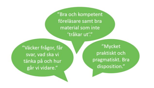 ”Bra och kompetent föreläsare samt bra material som inte ’tråkar ut’.”