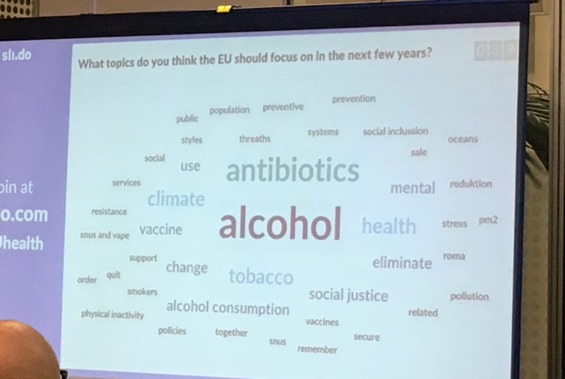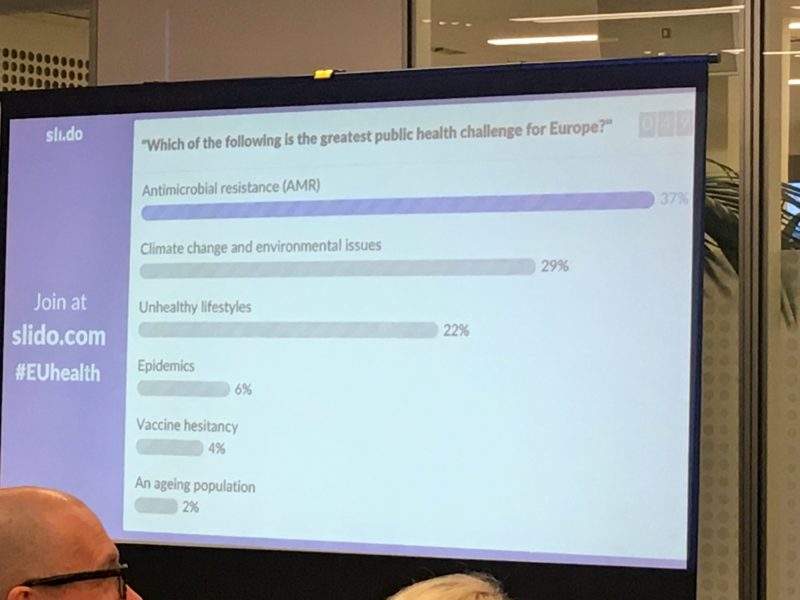 Via webben fick publiken svara på en fråga om vilka risker de ser som de mest akuta de kommande åren, och samma fråga fick förstås Andriukaitis och Ammon. Andriukaitis svarade att man måste se det hela holistiskt och att alla problem och risker – ohälsosam livsstil, antibiotikaresistens, åldrande befolkning, epidemier, klimatet och motstånd mot vaccinationer – måste hanteras.