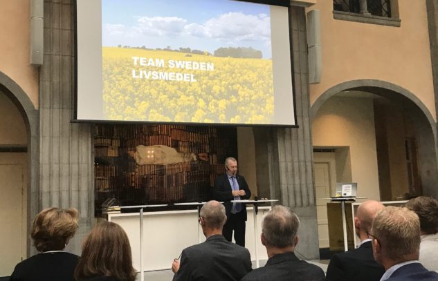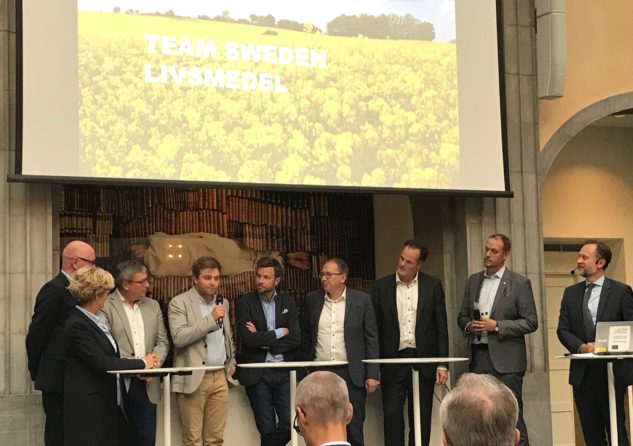 Ett 50-tal representanter från livsmedelsbranschen, regeringskansliet och myndigheter var på plats när landsbygdsminister Sven-Erik Bucht och Business Swedens vd Ylva Berg presenterade Team Sweden Livsmedel, regeringens nya plattform för livsmedelsexport. Regeringens nytillträdde exportsamordnare Johan Krallis Anell utvecklade tankarna kring Team Sweden Livsmedel och Fredrik Fexe, vice vd på Business Sweden, introducerade medlemmarna i styrgruppen för den nya plattformen. Ett antal myndigheter och branschorganisationer – bl a Visit Sweden, Livsmedelsverket, Jordbruksverket och Visita – fick även tillfälle att kort presentera sig och berätta hur de kan bidra till att öka den svenska livsmedelsexporten.