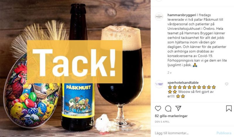 – Hela teamet på Hammars Bryggeri känner oerhörd tacksamhet för allt det jobb som hjältarna inom vården gör dagligen. Och känner för de patienter och anhöriga som drabbas av konsekvenserna av Covid-19. Förhoppningsvis kan vi ge dem en liten ljusglimt i påsk, skriver företaget på Instagram.
