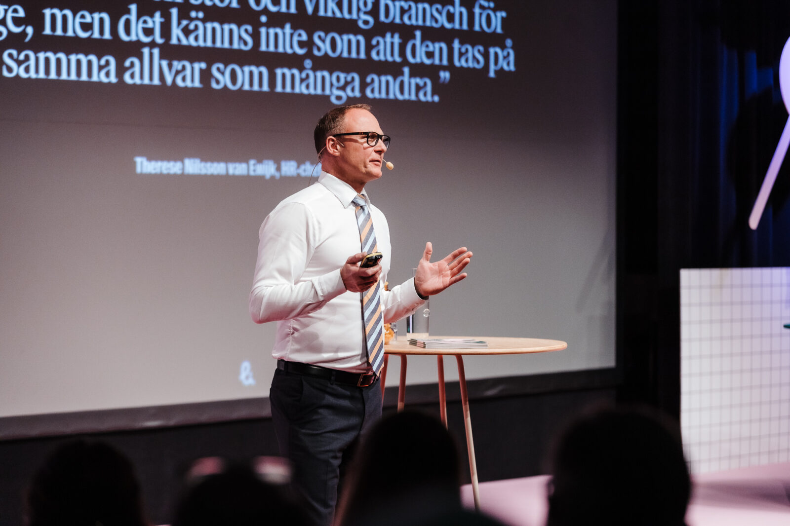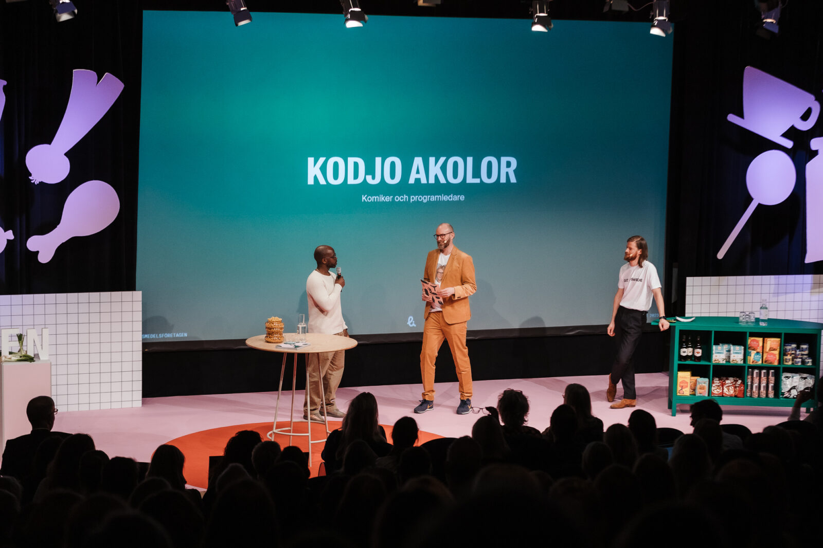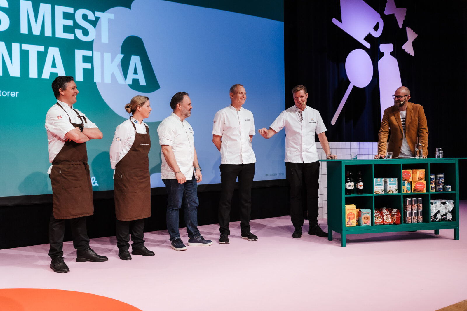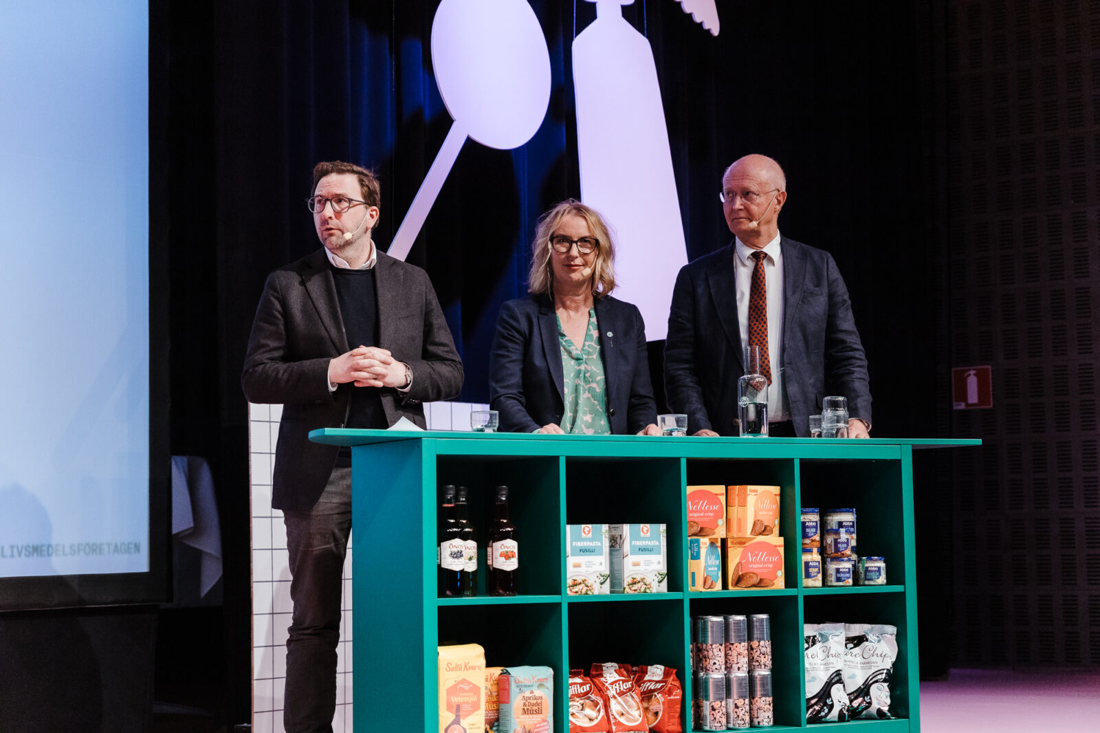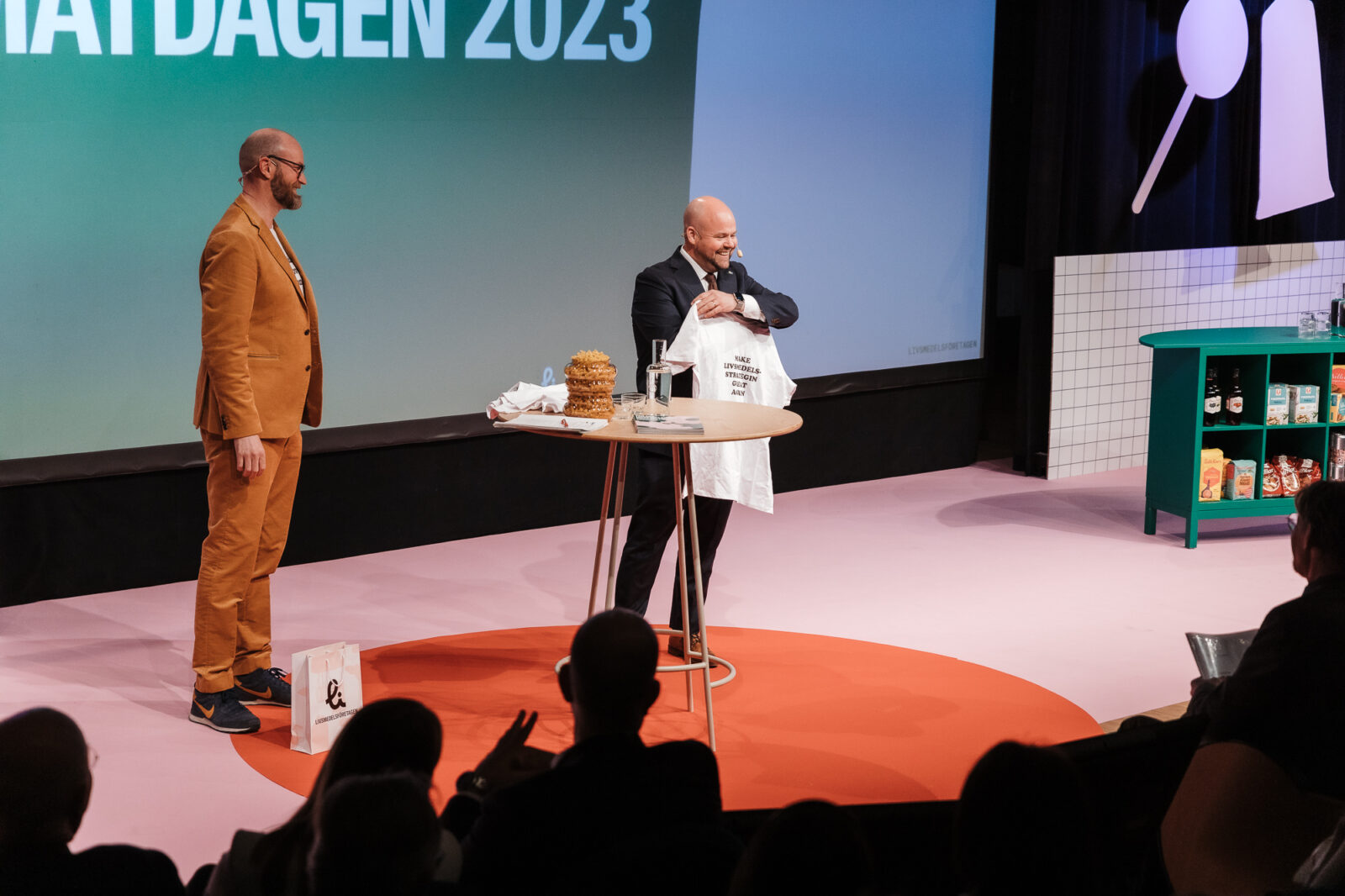 Sofie Eliasson Morsink, styrelseordförande Livsmedelsföretagen, hälsade välkommen till Matdagen 2023Björn Hellman, vd Livsmedelsföretagen, presenterade rapporten ”Var ska livsmedelsindustrin hitta 20 000 nya medarbetare?”Cecilia Kocken, vd Arla Foods Sverige, Alexandra Callegari Lindholm, HR-direktör Orkla Foods Sverige och Magnus Nilsson, vd Nyhléns Hugosons berättade om hur deras företag arbetar med kompetensförsörjningFredrik Malm (L), ordförande utbildningsutskottet, Mia Bernhardsen, regeringens särskilda utredare av Yrkeshögskolan och Johan Schnürer, rektor Örebro universitet pratade om hur utbildningssektorn kan bli bättre på att tillgodose företagens kompetensbehovTillsammans med några av Sveriges bästa konditorer bjöd Jesper Långström, utbildningsansvarig på Sveriges Bagare och Konditorer, på världens mest kompetenta fika Björn Hellman, vd Livsmedelsföretagen och landsbygdsminister Peter Kullgren delade ut priset Årets Livsmedelsexportör till Skruf Snus och deras chefsjurist Joakim JacobssonEfter sitt anförande om arbetet med att uppdatera livsmedelsstrategin fick landsbygdsminister Peter Kullgren en gåva från Livsmedelsföretagen i form av en t-shirt med texten ”Make livsmedelsstrategin great again”Ett spännande panelsamtal om integration och utanförskap med Alaa Alsheikh Ibrahim, teamledare Sevan Hummus Factory, Sophia Metelius, statssekreterare Arbetsmarknadsdepartementet, Benjamin Dousa, vd Timbro, Eva Guovelin, förbundsordförande Livsmedelsarbetareförbundet och Jonas Tunestål, vd Scandi StandardSom en överraskning fick åhörarna träffa programledaren för säsong sex av Halloj kylskåpet, komikern Kodjo AkolorModeratorn för dagen, Livsmedelsföretagens presschef Daniel Emilson, kommunicerade som vanligt viktiga budskap via t-shirt