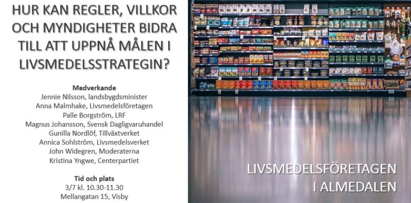 Den 19 juni presenteras handlingsplanen för livsmedelsstrategin 2020–2022 som tagits fram av Tillväxtverket och Jordbruksverket i samråd med Livsmedelsverket. I handlingsplanen anges flera exempel på vad som behöver genomföras inom området regler och villkor fram till 2022 för att den svenska livsmedelsbranschen ska bli konkurrenskraftig, hållbar och för att produktionen ska öka. Livsmedelskedjans branschorganisationer Livsmedelsföretagen, Svensk Dagligvaruhandel och LRF bjuder in till ett samtal med politiker och myndighetsansvariga på Livsmedelsverket och Tillväxtverket om hur detta ska förverkligas. Hur ska handlingsplanen bidra till att aktörer i livsmedelskedjan får regler som är lätta att förstå och följa, att den svenska tolkningen av EU-regler är i linje med övriga EU-länders och att Sverige skall få mer inflytande över utformningen av EU:s regler inom livsmedelsområdet?