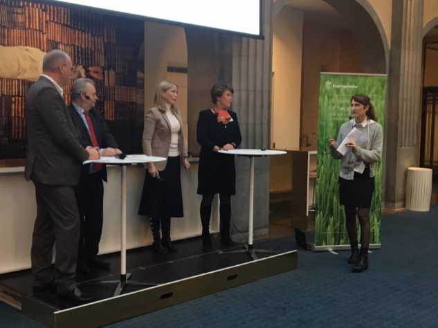 Statssekreterare Elisabeth Backteman fortsatte att berätta om övriga delar som ingår i satsningen 2018. Den mest grundläggande delen är en omfattande analys av exportpotentialen för olika svenska livsmedelsprodukter. Analysen ska göras i samråd mellan branschen och Business Sweden för att kunna matcha produkter mot specifika marknader. Vidare berättade Backteman att det ska inrättas ett program för regional exportrådgivning som främst riktas mot små- och medelstora företag i syfte att höja kunskapen om exportutmaningarna. Därtill ska det tas fram en strategi för att främja export av ekologiska produkter, där efterfrågan växer både i Sverige och internationellt.