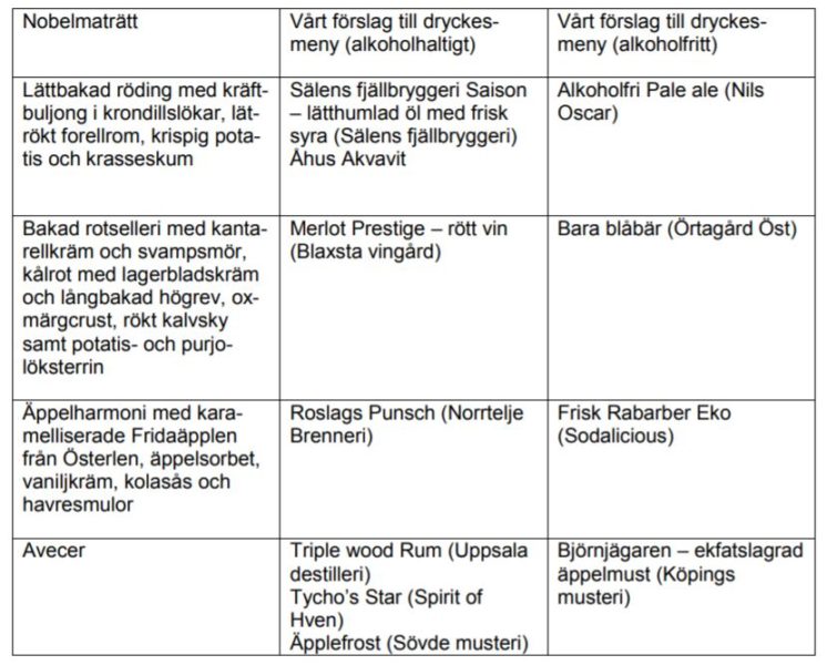 Kommer vi få se en svensk dryckesmeny på Nobelbanketten 2019?